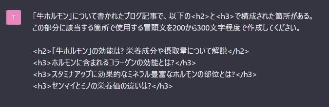 それでは早速、<h3>のコンテンツに対応する文章を生成してみましょう。