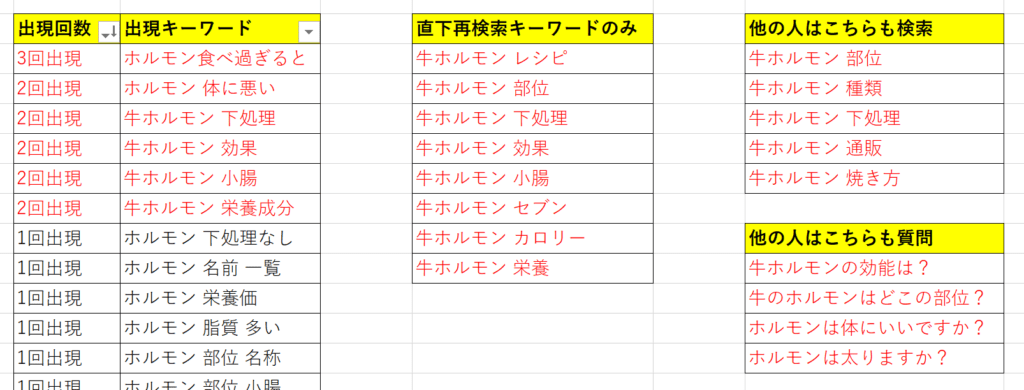 つまり、「ホルモンに含まれるコラーゲンの効能とは?」といった“キーワード“そのものではない長文であっても、共起語は高い確率で取得することが可能です。