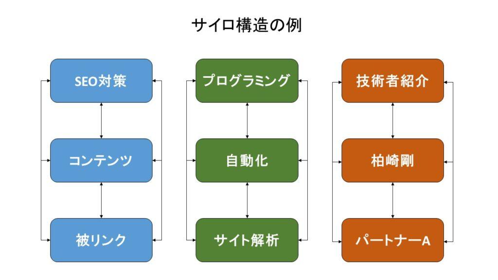 例えば、”SEO対策”、”プログラミング”、”技術者紹介”といったトピックで、異なる3つのサイロがあると定義します。