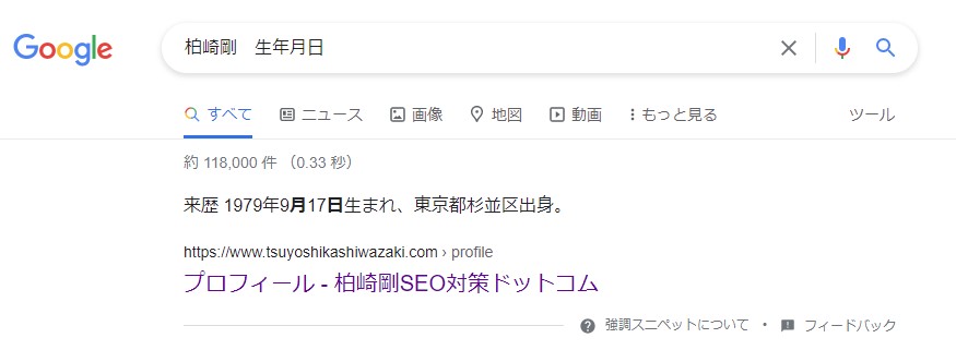 - 人物の「生年月日」などで検索した際に出現するのは強調スニペットである。