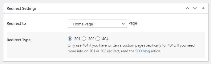 リダイレクトする方法は、WordPressのリダイレクト用のプラグイン「Redirect 404 Error Page to Homepage or Custom Page」を使用すると便利です。