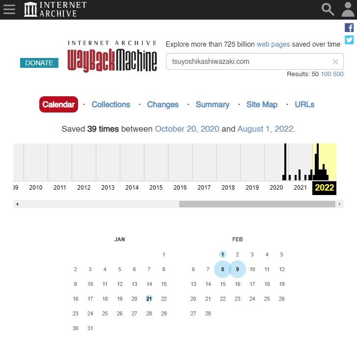 Internet Archiveは、米国の非営利団体によって運営されているウェブサイトの履歴閲覧サービスです。