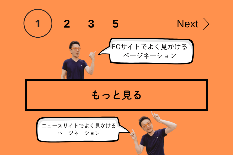 ページネーション(英語表記:Pagination)は、ウェブページのコンテンツを複数ページに分割し、ユーザーが“次へ”や“前へ”ボタン、またはページ番号を使って各ページに移動できるようにする機能です。