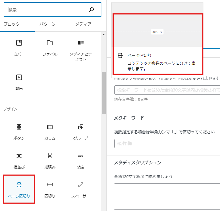 このページ区切り機能を使えば、記事内を簡単に複数のページに分割することが可能です。